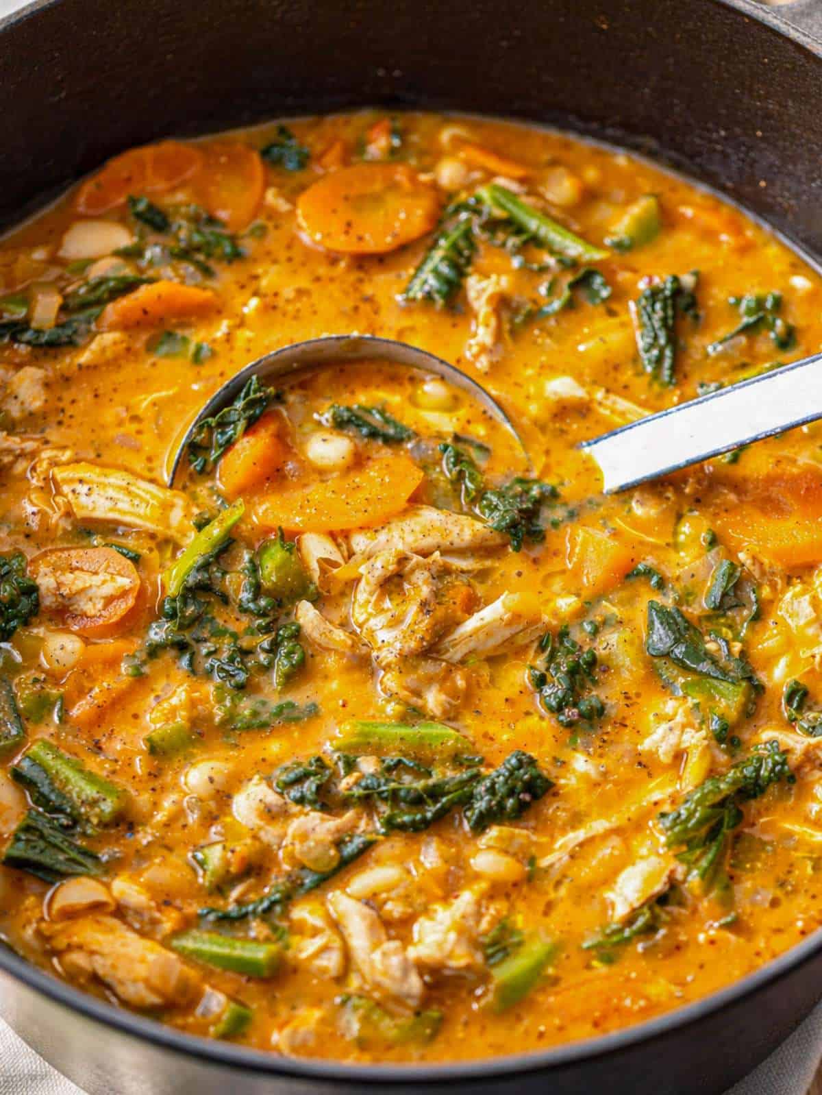 - Kale: makes this a true chicken soup with white beans and greens. Spinach, chard, or savoy cabbage are all great swaps.